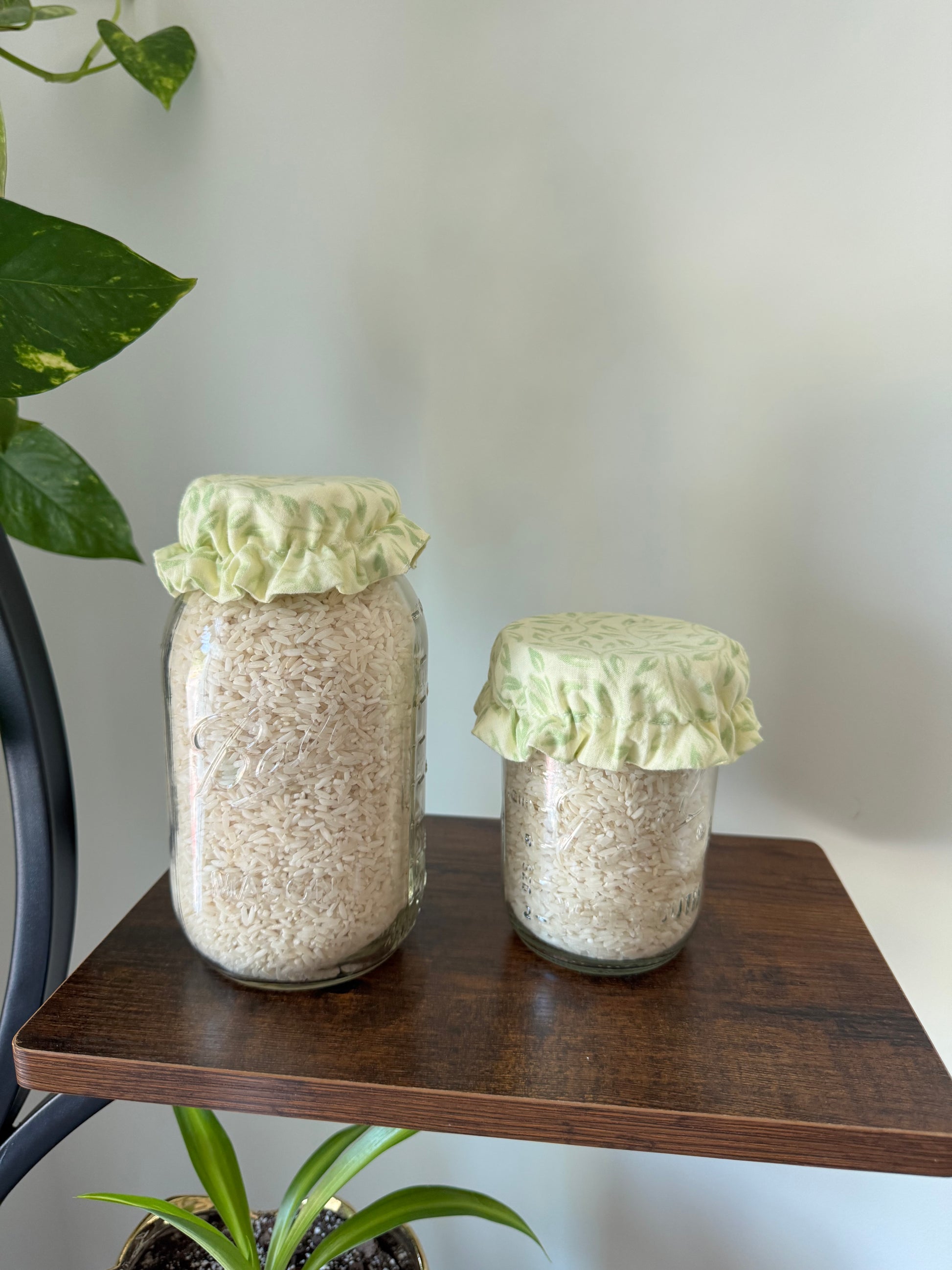 Handmade Cotton Mason Jar Covers – Yellow and Green